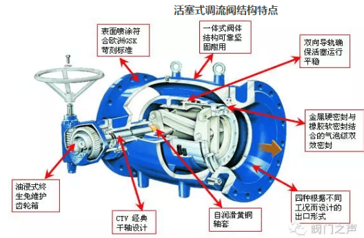 产品技术特点 | 活塞式流量调节、压力调节阀是一种能满足各种特殊调节要求的阀门,它的调节功能是靠活塞状的阀塞在阀腔内作轴向(水流方向)移动,来控制水流的阀门出口面积来实现的。